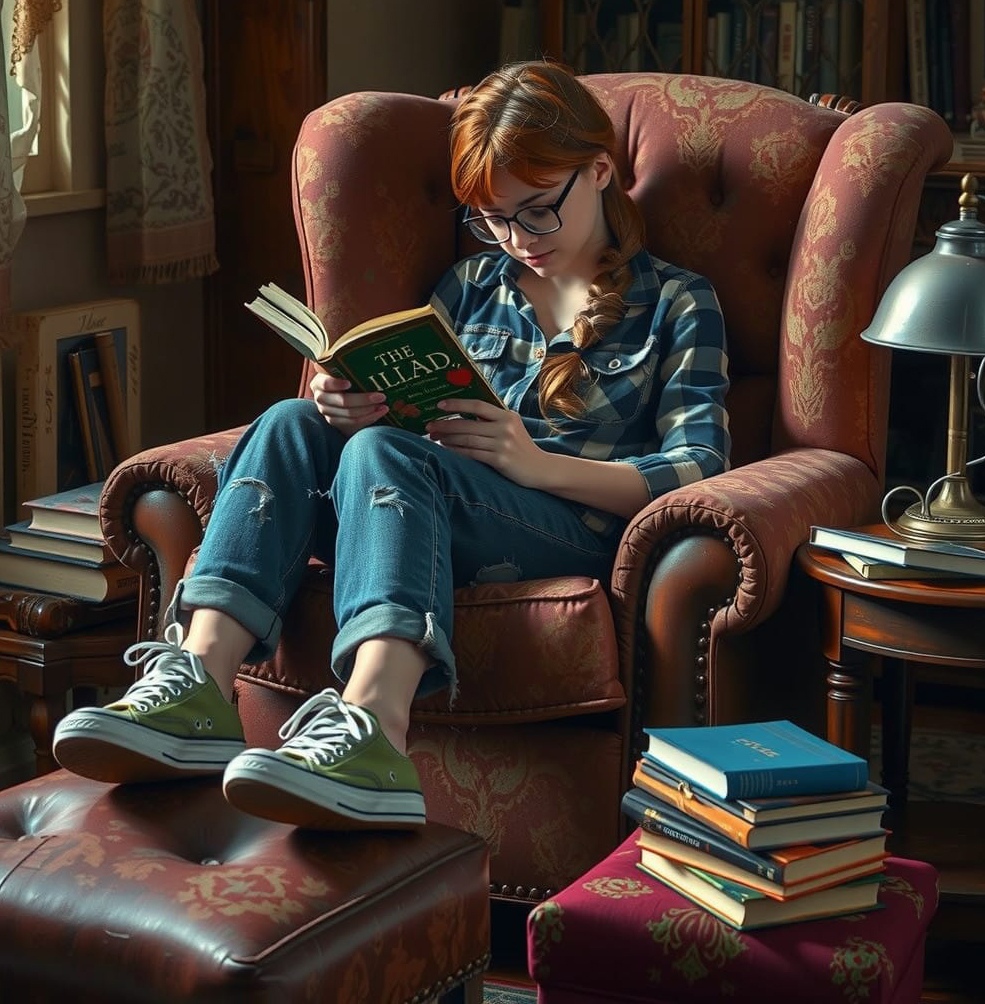 “Yeah, right,” she said to herself after a while. “He’s probably just some boring old coot who spends all his time in his study, poring over his ledgers and thinking back on the good ole days.” She turned back to her writing, which she was doing in a primitive spiral notebook with an antiquated lead pencil, which she was pleased to call her “lexicographical materials.”