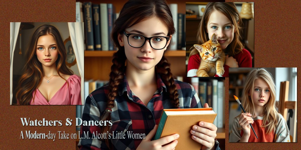 Disclaimer: Adolescence is a 20th-century invention. Before then, you were a child, then you were an adult. There was no transitional period, at least not officially. In another one of Alcott’s books, an older female character remarks, “In my day…we were little folks till eighteen or so; worked and studied, dressed and played, like children; honored our parents…” Books, back then, were written for children, or for adults. Teens read children’s books, and some read adult books. Nowadays, of course, it’s different. Teens (Young Adults or YA) from 13 to 18 have books written specifically for them, while preteens from ages 9 to 12 (Middle Grade or MG) have books aimed at them. Books specifically for teenagers were not written until the 1940s. Most preteens aren’t likely to read YA, and older teens rarely read MG books. Little Women was written to appeal to girls, period, without such divisions. But here in the 21st century, I’ve chosen to write my update for YA, since the protagonists are in their middle to late teens, and so it may be deemed unsuitable for preteens. There are some situations, issues, language, and concerns that may be above their level of understanding or be considered inappropriate. So, Watchers & Dancers should be considered a YA book, and chosen as such.